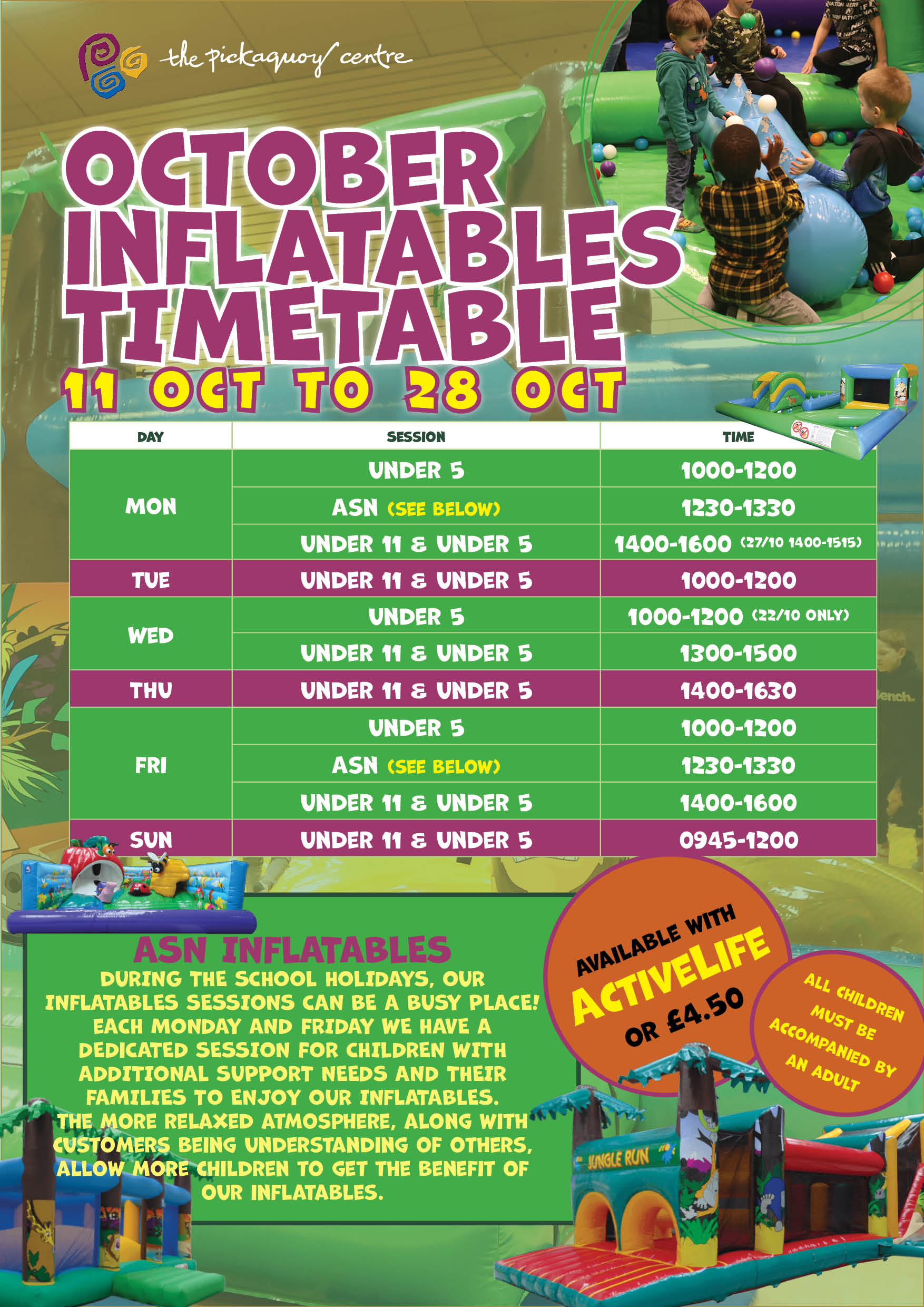 Over the summer we have the following Pool sessions available: